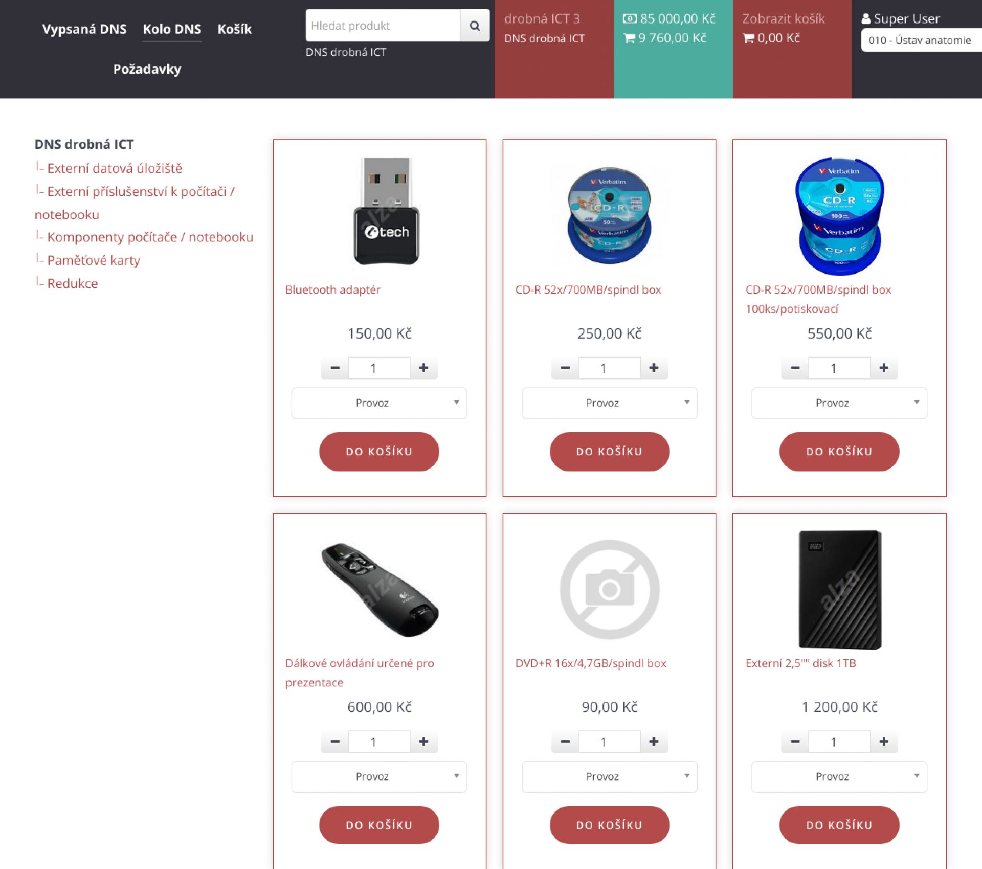 Naprogramovali jsme dynamický nákupní systém pro Lékařskou fakultu v Plzni, Univerzita Karlova.