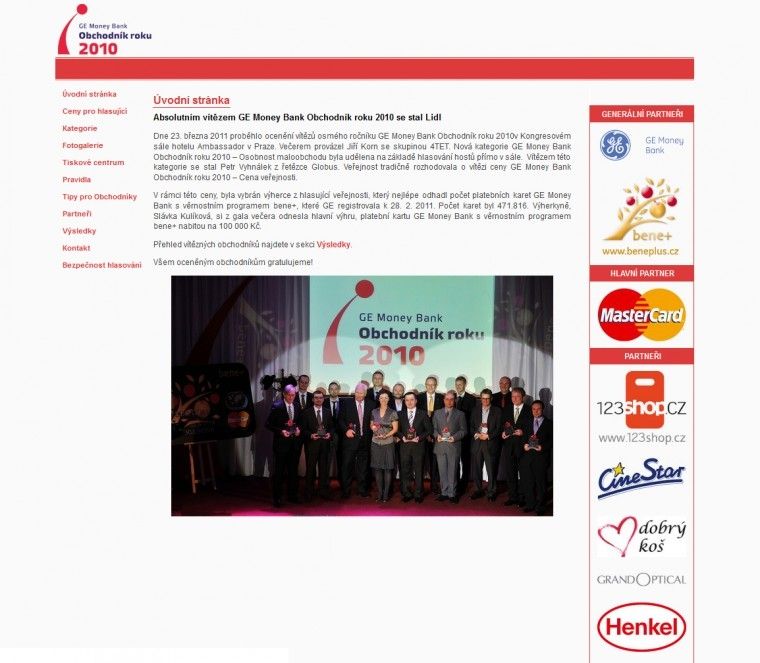 Letošní ročník soutěže GE Money Bank Obchodník roku 2012 už zná své vítěze. Absolutním vítězem ocenění a držitelem titulu GE Money Bank Obchodník roku 2012 se stal diskontní řetězec Lidl.